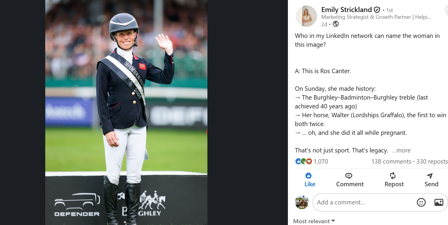 This week, Emily Strickland’s post on LinkedIn struck a chord, not just with me but across the equestrian world - not because it told us something new, but because it finally asked the right questions.