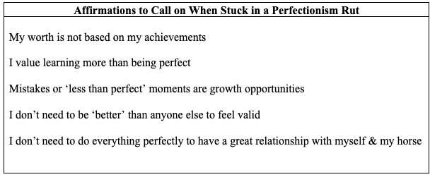 When we strive for perfection, we place undue pressure on ourselves and our horses. As equestrians we have the advantage and disadvantage of working with a live being that instantly picks up on our mood and energy, that’s why it is beneficial to delve into how we perceive ourselves & our mindset away from our horses.
